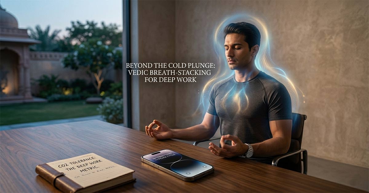 Long before altitude masks and hypoxic tents, the Vedic tradition utilized Kumbhaka (breath retention) as the ultimate tool for “Chitta Vritti Nirodha” the silencing of mental chatter.