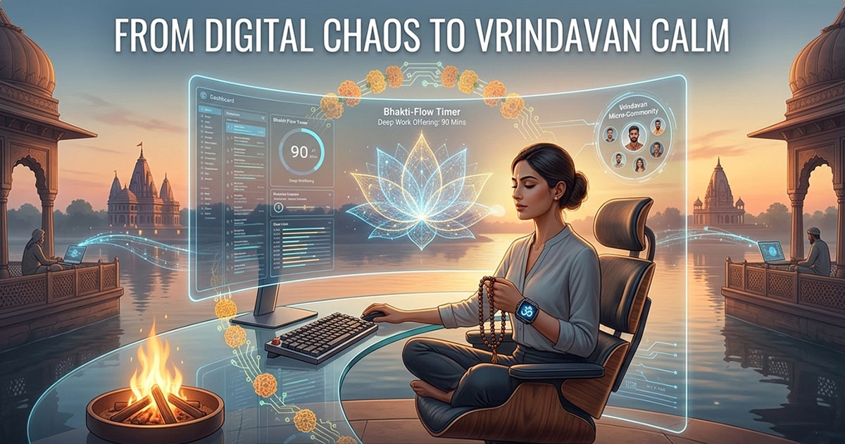 The transition from Digital Chaos to Vrindavan Calm isn’t about moving to India; it’s about moving your focus from the “Self” to the “Service.” In the era of AI and automation, your ability to apply Bhakti Focus to your craft is the only thing that remains truly human.