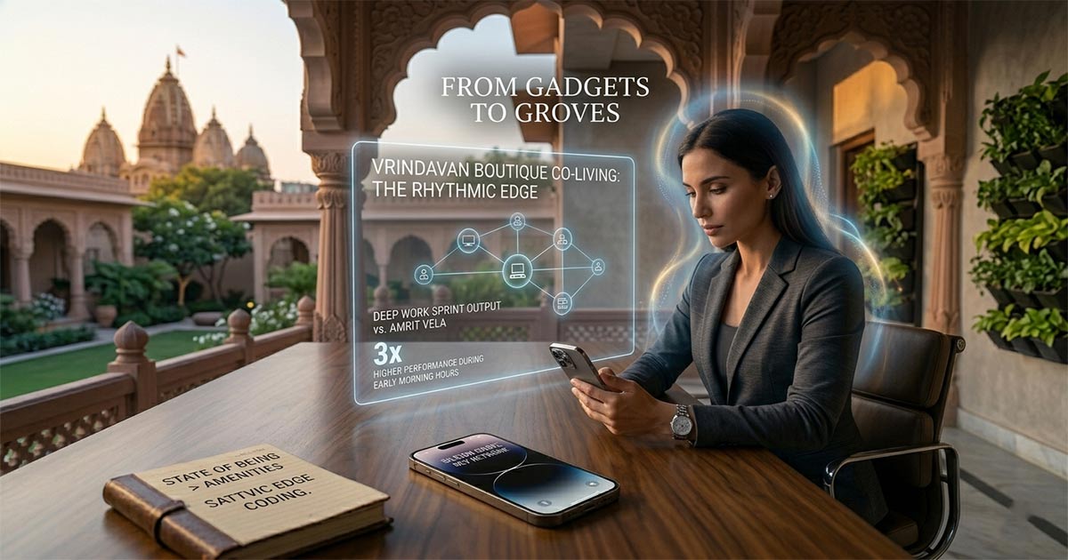 - The 4 AM Advantage: In Vrindavan, the city wakes up at Brahmamuhurta. Tech teams are finding that aligning their “Deep Work” sprints with the city’s natural spiritual rhythm leads to 3x higher cognitive output than late-night “crunch” sessions in the city.